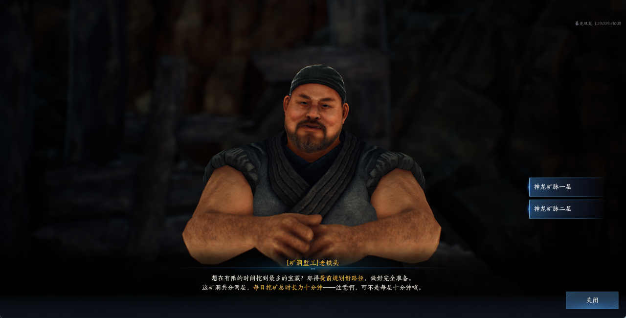 - 在比奇废矿1层有位名叫老铁头的矿洞监工,通过他可进入神龙矿脉挖采强化装备用的【黑铁矿石】。每日可进入10分钟,中途可退出再进入,退出会保留已消耗的时间。