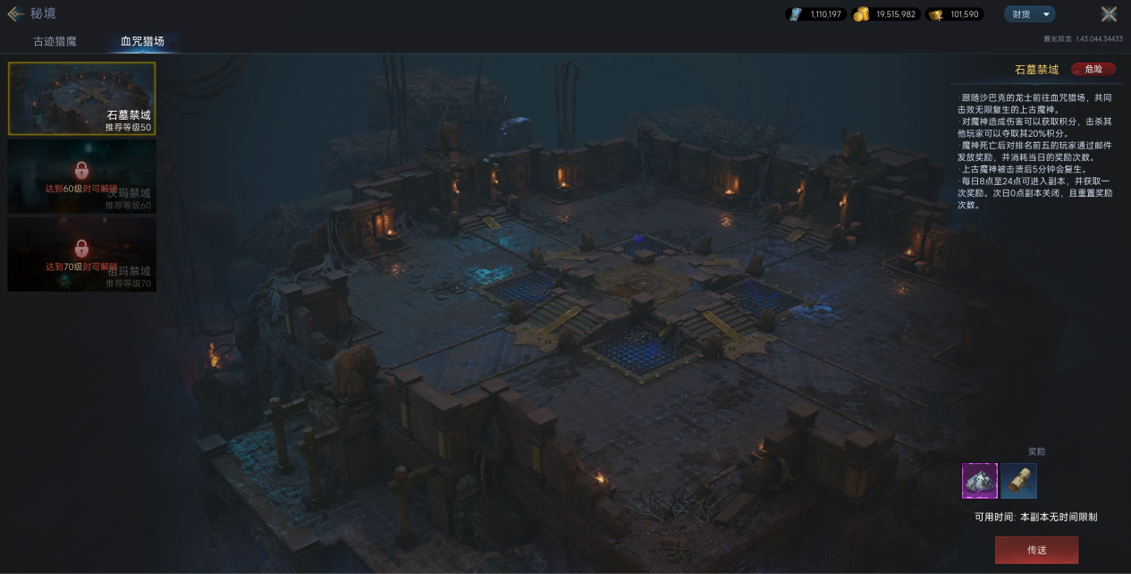 - 血咒猎场按照等级分为不同场景,玩家可根据自己的等级选择合适的场景进入。